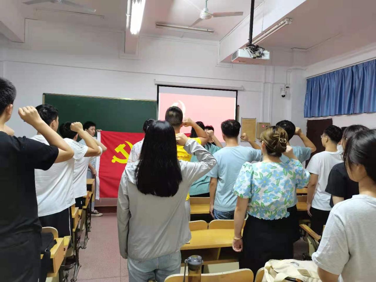会议第一项,重温入党誓词,由倪晗同志带领全体党员重温入党誓词。