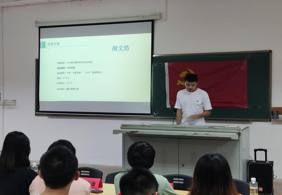 接下来是本科2018级胡文浩同志向大家分享了自己在学习中的一些经验,并介绍了自己保研的经历,告诫学弟学妹们要平衡好学习和生活。在保研路上,和志同道合的朋友们一起进步,大家共同监督。除了专业成绩之外,数学和英语等公共课也要认真学习,同时积极参加各项竞赛。保研过程中要格外关注对信息的收集,大家要关注公司官网以及研招办官网对于保研的一些要求,避免错过。