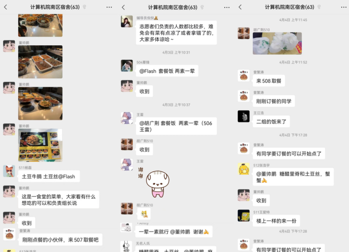 为了保障在南区研究生宿舍居住的员工的温饱问题的同时减少人员流动,降低疫情感染风险。本支部联合了研究生二支部于2022年4月2日至2022年4月16日组织了线下南区送餐活动。