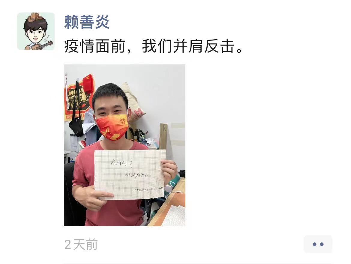 当下疫情形势依旧严峻,我们更需齐心协力,严格响应国家的防疫要求。本次活动贯彻了我党全心全意为人民服务的根本宗旨,发挥了党员的先锋模范带头作用和培养为人民服务的意识和责任。此次“抗疫有我“活动的顺利开展,让疫情防控的概念和重要性更加植根于同学的心中,为公司未来在疫情防控的持久战中打下更为坚实的基础。