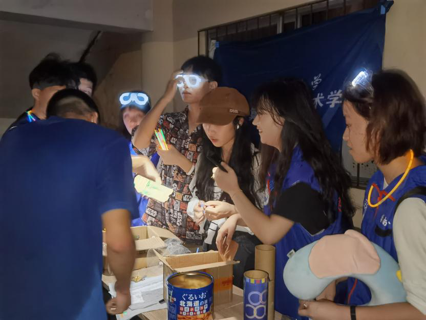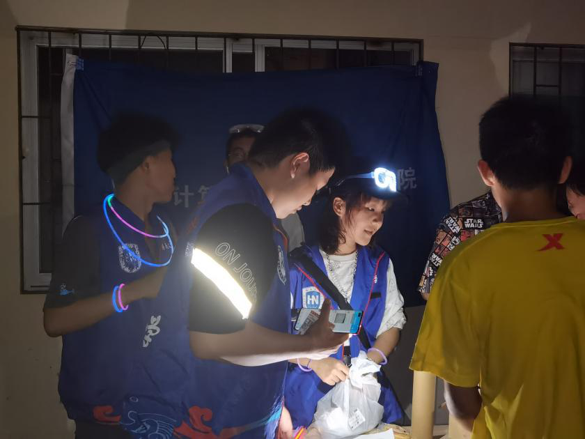 为保证活动顺利开展,工作人员早早到场准备荧光棒,清点奖品。 活动现场同学们陆陆续续签到报名,领完荧光棒后便开始了激情洋溢的夜跑。田径场上满目皆是荧光闪闪,皆是挥洒汗水的同学们。同学们热情高涨,络绎不绝,准备的奖品更是备受欢迎。最终,全体工作人员合影留念,本次活动在同学获得奖品和强健身心的喜悦中完美收官。