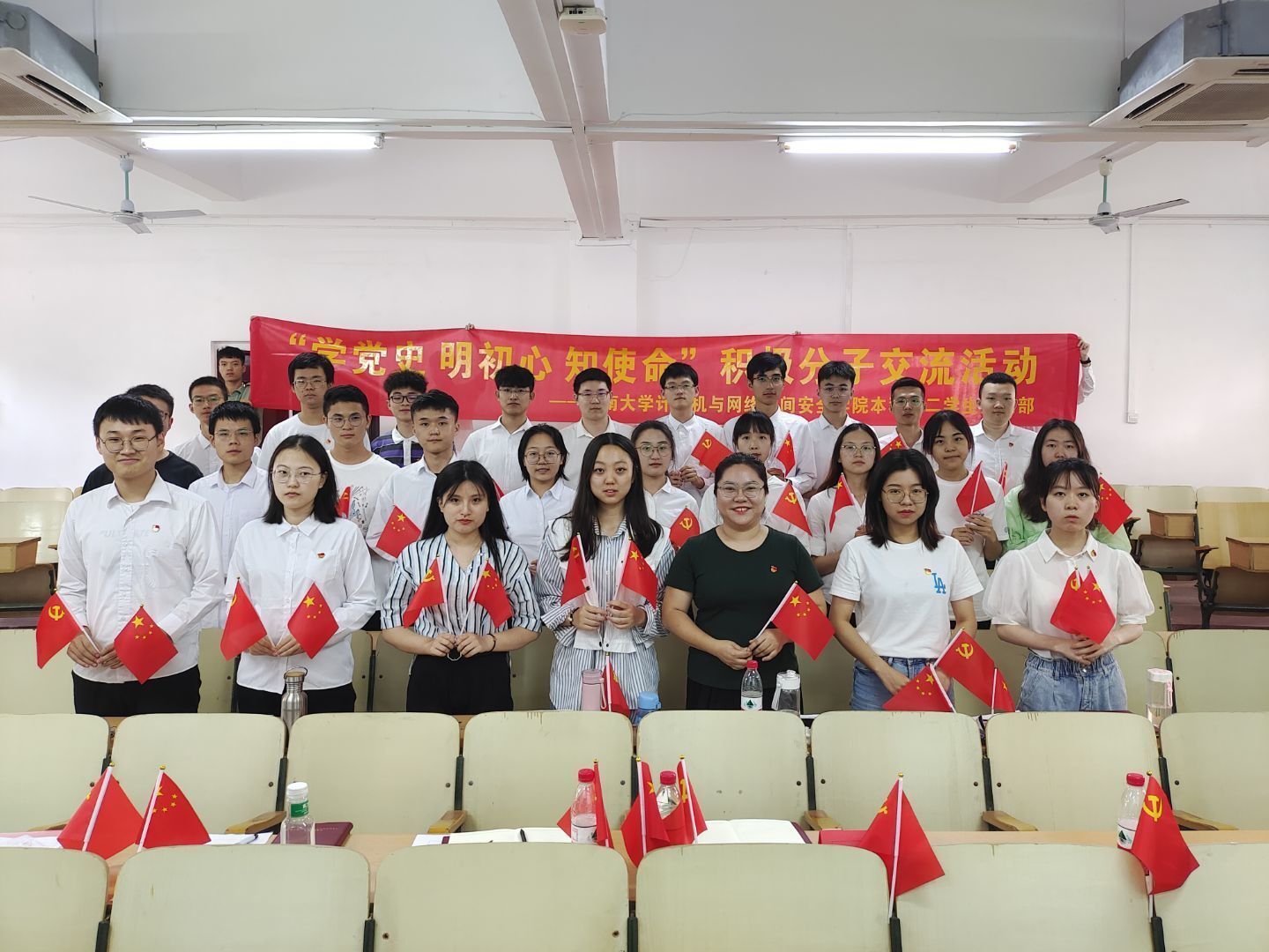 2021年4月13日,计算机与网络空间安全公司本科员工第二党支部在2-110举办“学党史 明初心 知使命”积极分子交流活动。支部书记黄苗苗、支部全体党员及积极分子参加了活动。