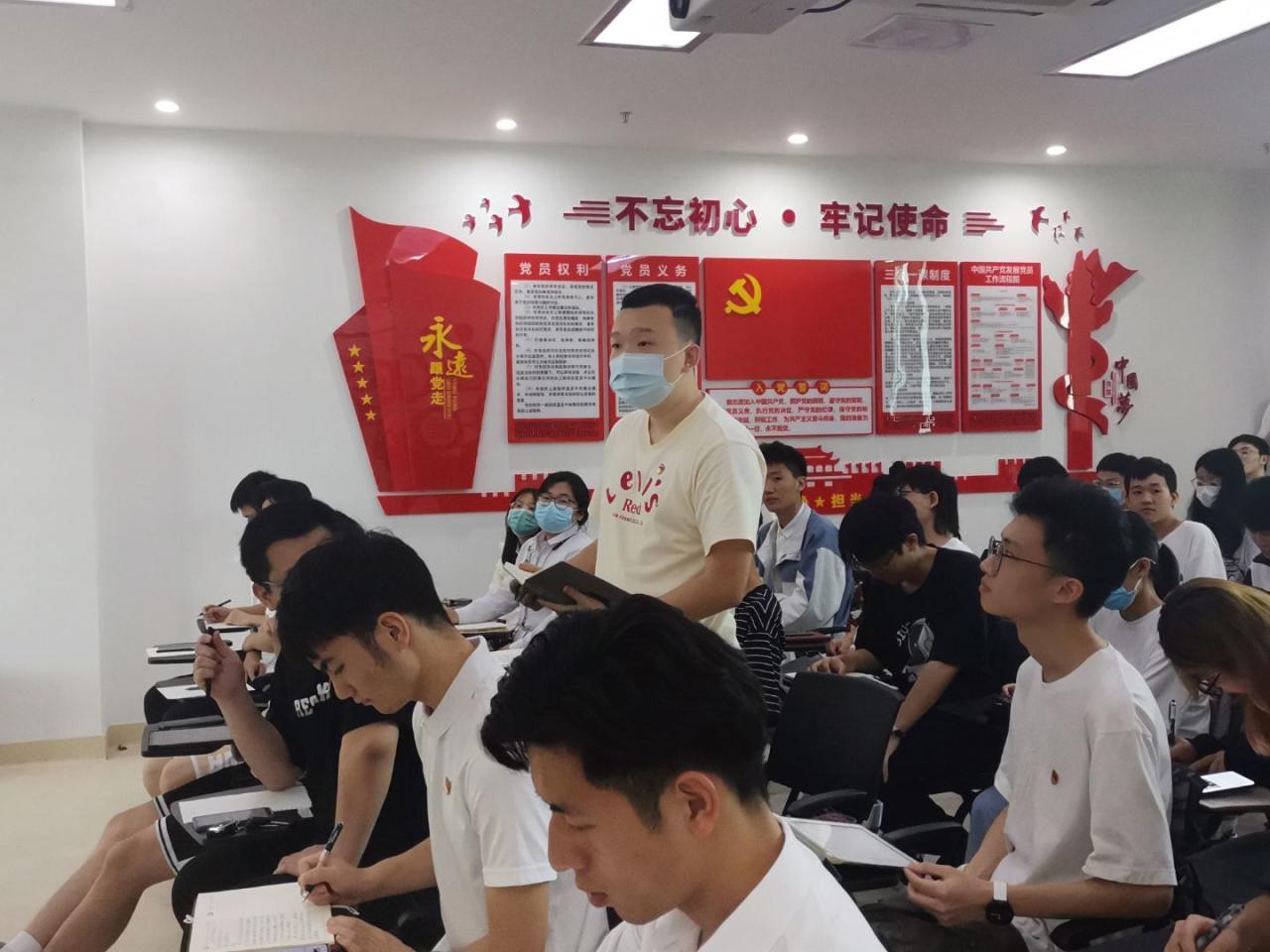 现场党员对进行答辩的积极分子进行提问,进一步了解积极分子在日常的学习、生活和工作方面的感悟,以及积极分子对党的认知和了解。