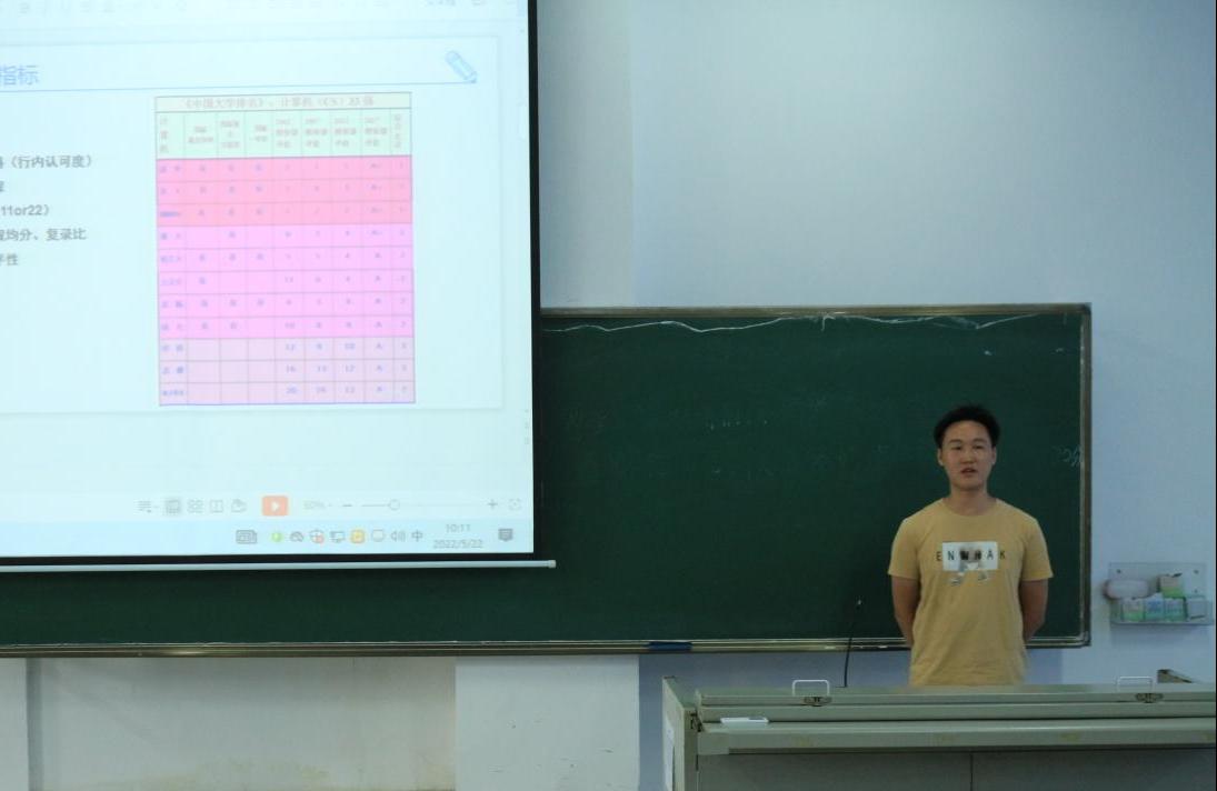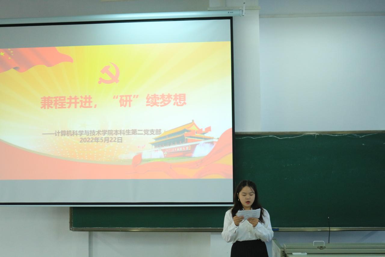 2022年5月22日上午9时,bevictor伟德计算机科学与技术公司本科生第二党支部于5号教学楼311教室开展考研保研经验交流会。本次交流会邀请了游雨菲、杨谋德、汪子健、李亚子四名2018级保研考研成功的员工代表来分享他们的保研考研经历与实战经验,党支部部分同学参与此次分享会。本次活动由杨文蕊同学主持。