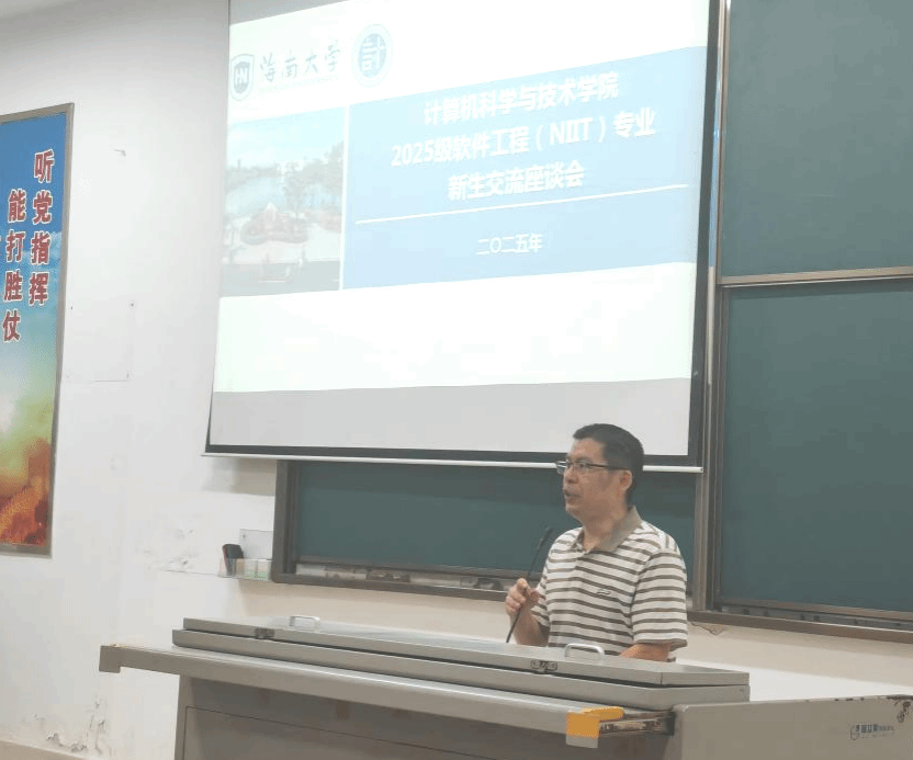 随后,教学委员会主任唐朝胜围绕软件工程(NIIT)专业展开详细宣讲。他从专业基本情况、课程体系、团队队伍及建设成效四大维度进行介绍,让新生对专业架构、学习内容、团队实力及发展成果有了全面且清晰的认知,为新生搭建起专业认知的初步框架。