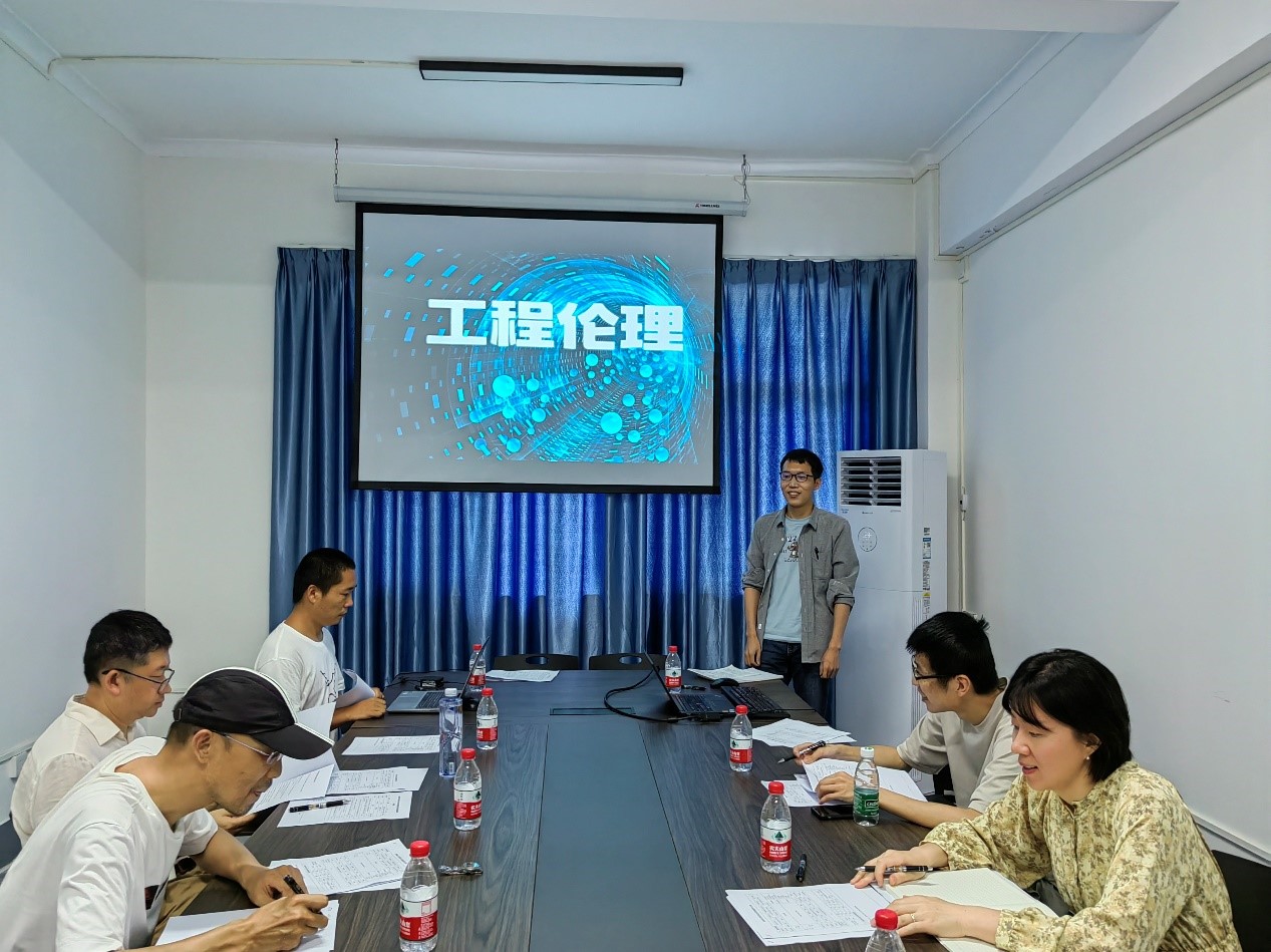 此次试讲共有两位老师参加,杨烈老师试讲《工程伦理》课程,徐建波老师试讲《研究方法论》。在试讲环节中,2位教师充分展示了基本教学素养与水平。每位教师试讲结束后,在场专家对新进教师表现突出之处予以充分肯定,对板书、PPT制作、语速、导入问题设计等方面都提出了中肯建议。