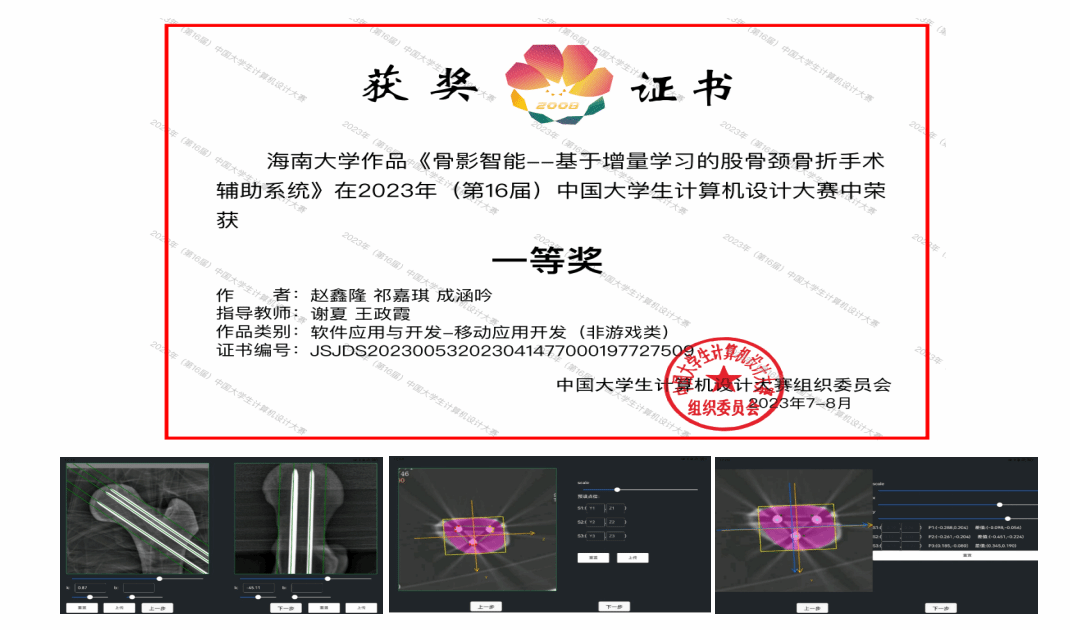 经过激烈角逐,在“软件应用与开发”大类中共产生一等奖42项、二等奖280项、三等奖632项。公司谢夏、王政霞老师指导的员工团队作品“骨影智能--基于增量学习的股骨颈骨折手术辅助系统”荣获国家级一等奖。该作品由赵鑫隆、祁嘉琪、成涵吟三位同学共同完成,是bevictor伟德的员工作品在该赛道获得国家一等奖的零突破。