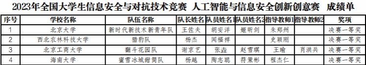 据悉,两支参赛队伍指导教师为计算机公司程杰仁教授,参赛作品分别为:杨越、陶志聪、符策彬同学创作的题目为基于区块链的DDoS攻击协同检测系统和曾发强、李继梅、韩梦雪同学创作的物联网场景下目标检测模型的攻击与防御系统两项作品。此次大赛为期2天,共有来自北京大学、哈尔滨工业大学、华中科技大学等111所高校的613支队伍参加。在“人工智能与信息安全创新创意赛”赛道共产生一等奖10项、二等奖15项、三等奖13项、优秀奖55项。
