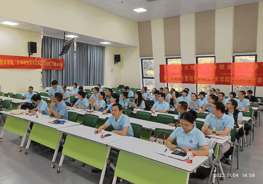 本站讯(通讯员 龚琨),11月4日下午,伟德体育在儋州校区7教101室召开2023年秋季学期全院大会暨伟德体育“产学研协调共促创新成果转化”专题培训会,并邀请了bevictor伟德科学技术发展院陈海明副经理作关于科研成果转化的讲座,bevictor伟德学术副董事长、计算机公司经理杨天若,公司党委书记王红英,副经理程杰仁、谢夏、刘华中以及公司的教职工参加了此次讲座。